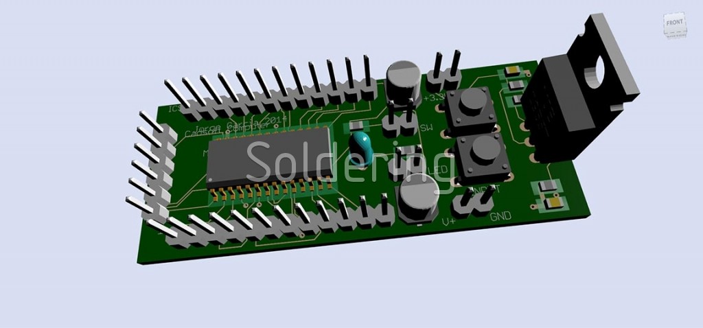 - Obsahuje dva schematické listy, dve vrstvy signálu a plochu dosky 80 cm2.