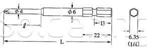 - priemer drieku (D) 6.35 mm (1/4 "),