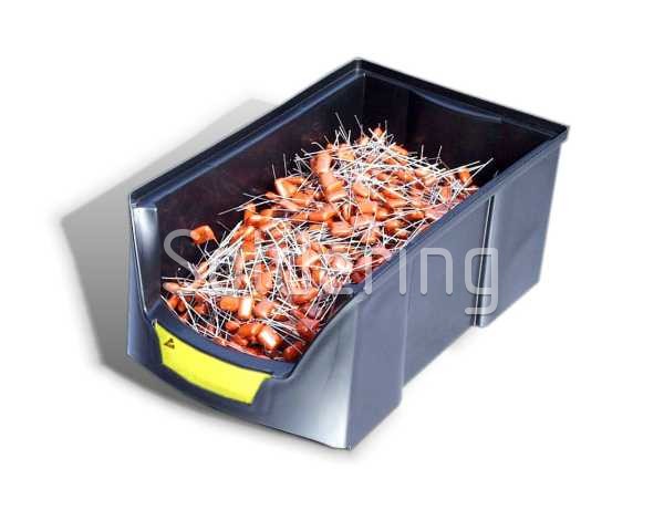 - Antistatický stohovací zásobník vhodný na skladovanie komponentov citlivých na elektrostatický výboj.