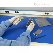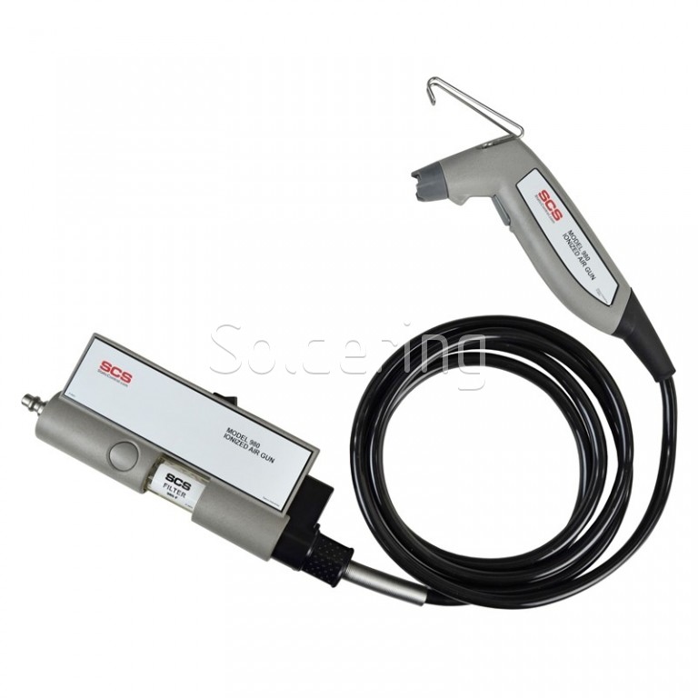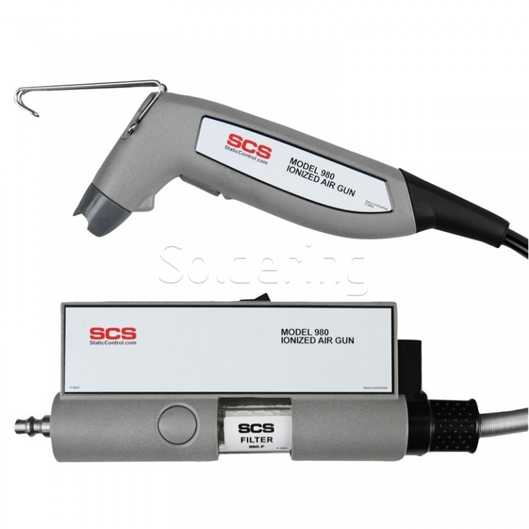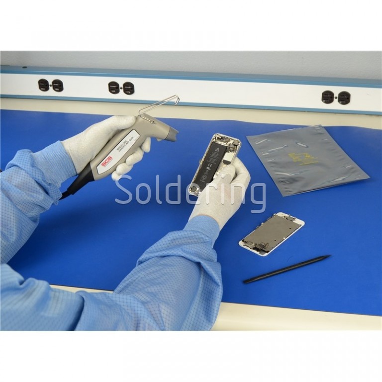 - Ionizačné pištoľ s bodovým použitia, ktorá neutralizuje elektrostatický náboj na pracovnej ploche operátora.