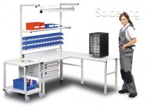 - Pracovný stôl navrhnutý pre použitie v modernom výrobnom či montážnom prostredí.
