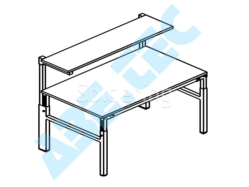 Výška sa nastavuje pomocou imbusu medzi 650 a 900 mm. Pracovný stôl so zvislými profilmi a laminovanou policou, nastavenie výšky medzi 1080 a 1550 mm, nosnosť 50 kg. Konštrukcia je rovnaká ako pri stole TP.