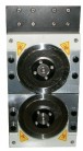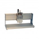 Zariadenie na rezanie a oddeľovanie materiálu dosiek plošných spojov. Stabilná konštrukcia z extrudovaných hliníkových profilov a hliníkových dosiek s práškovým povlakom.