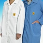 ESD / antistatické oblečenie určené pre operátorov pracujúcich s ESD citlivými súčiastkami. Laboratórny plášť s dlhým rukávom. Farba biela, veľkosť S.