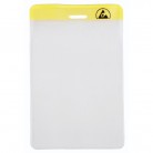 ESD / antistatická visačka na ID kartu, ideálna pre pracovníkov v elektropriemysle, pracujúci s komponentmi citlivými na ESD. Vertikálna, rozmery 56 x 89 mm, bez klipu. Balenie obsahuje 10 ks.