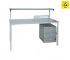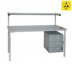 ESD / antistatický pracovný stôl vhodný do priemyselných priestorov, dielní alebo laboratórií. Rozmery pracovnej plochy 1500 x 750 mm, prevedenie s policou a kontajnerom so zásuvkami.