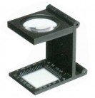 Lupa s dvoma plankonvexnými šošovkami, priemer šošovky 15 mm, zväčšenie 10,0x s nastaviteľnou ohniskovou vzdialenosťou 17 - 24 mm. Štvorcová, milimetrová aj palcová stupnica o rozmere 10 x 10 mm.