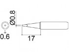 Šírka spájkovacie plochy R = 0,5 mm, dĺžka hrotu 17,0 mm.Pocínování 2,0 mm od vrcholu hrotu. Spájkovacie hroty určené pre spájkovaciu rúčku HAKKO 900M, 907 a 933.