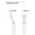 Šírka spájkovacie plochy 1,2 mm, výška spájkovacia plochy 0,7 mm, dĺžka hrotu 25,0 mm. Spájkovacie hroty určené pre spájkovaciu rúčku HAKKO 900M, 907 a 933.
