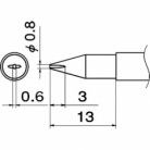 Šírka spájkovacie plochy 1,3 mm, uhol skosenia hrotu 60 °, dĺžka hrotu 16,5 mm. Pre spájkovaciu stanicu Hakko FX-888.Není kompatibilný pre HAKKO FX-8802 a HAKKO FX-8803.