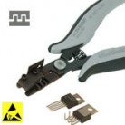 Frontálny strih v sklone 60°. Nástroj umožňuje, aby vývody vyčnievali 1,5 mm nad pracovnou plochou. Max. štiepacia sila 3 kg, priemer Cu vodiče 1,02 mm. AWG 18. Dĺžka 144 mm. ESD prevedenie.