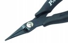 ESD / antistatické úchopovej kliešte s rovnými plochými čeľusťami. Na špičkách sú čeľuste sformované do polkruhových. Dĺžka klieští 145 mm, dĺžka čeľustí 29 mm, rozmery špičiek 1,0 x 1,2 mm. Vnútorné vrúbkovanie.