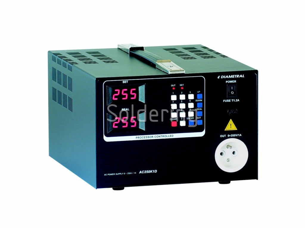 Procesorom riadený stabilizovaný striedavý zdroj AC250K1D-S nájde uplatnenie predovšetkým všade tam, kde je nutné napájať rôzne zariadenia striedavým stabilizovaným napätím 0V ÷ 255V/1A. Jeho vlastnosti ocenia najmä vývojoví technici, opravári spotrebnej elektroniky, výrobné podniky a v neposlednom rade tiež odborné školy.