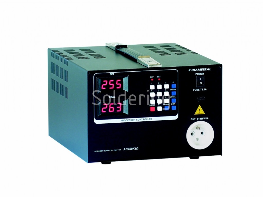 Procesorom riadený striedavý zdroj AC250K2D nájde uplatnenie predovšetkým všade tam, kde je nutné napájať rôzne zariadenia striedavým napätím 0V ÷ 255V/2A. Jeho vlastnosti ocenia najmä vývojoví technici, opravári spotrebnej elektroniky, výrobné podniky a v neposlednom rade tiež odborné školy.