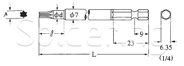 Bit torx V-17T (5.5x15l)-T-25-(7)-75