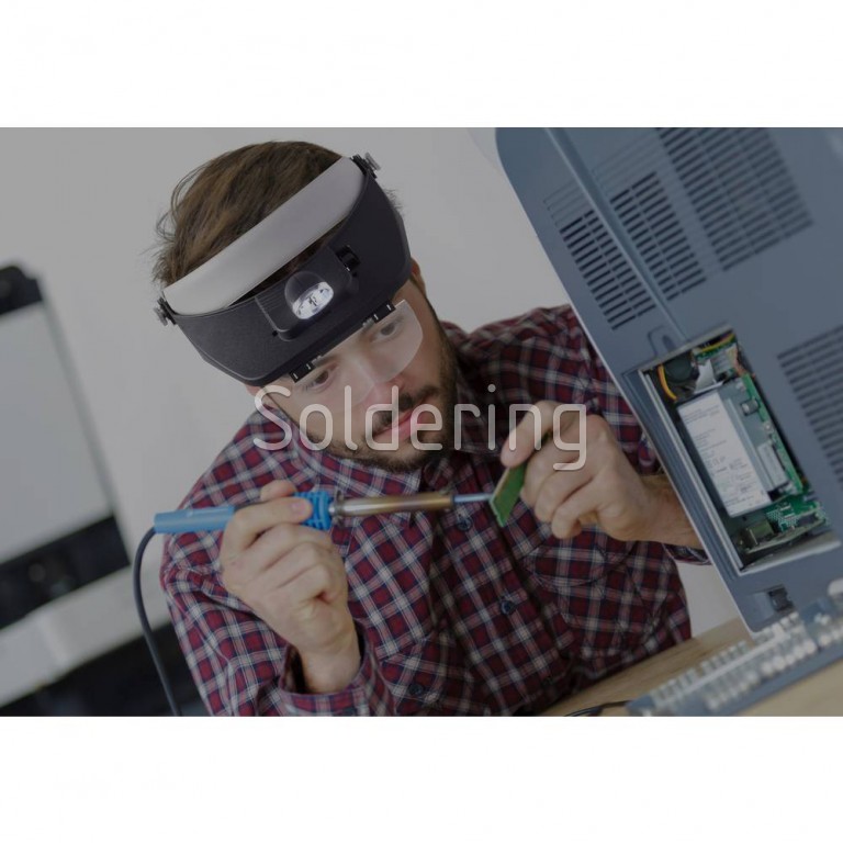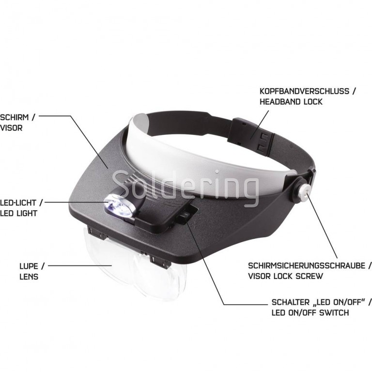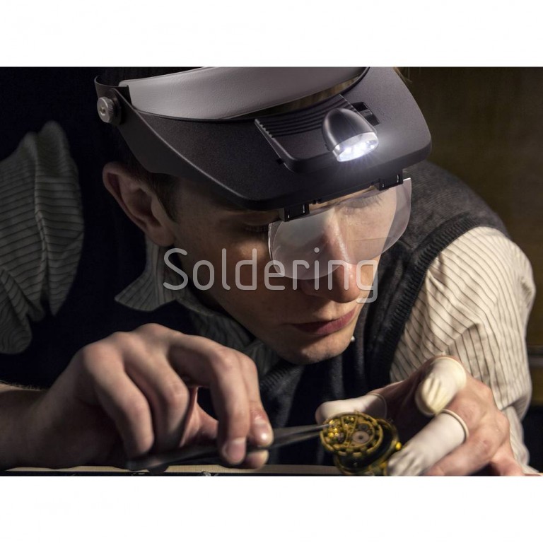 - Náhlavná čelová lupa s LED svietidlom.