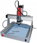 - Pracovná plocha neurčuje obrobiteľnosť materiálu. Maximálny rozmer obrobku je daný veľkosťou použitých frézovacích nástrojov.