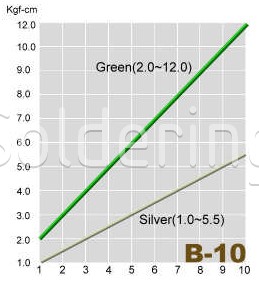 - Rozsah krútiaceho momentu (strieborná pružina): 0,1 - 0,55 N.m, 0,9 - 4,8 Ibf.in, 1,0 - 5,5 kgf.cm.
