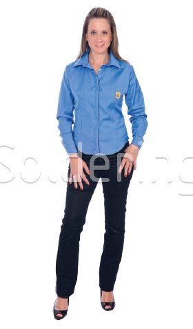 - ESD / antistatická dámska košeľa so zapínaním na gombíky.