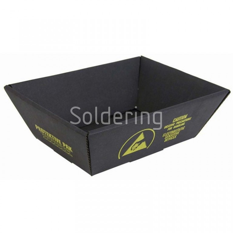 - ESD / antistatická krabička určená pre skladovanie DPS a predmetov citlivých na ESD.