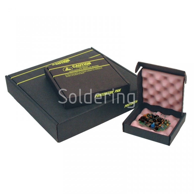 - ESD / antistatická lepenková prepravná krabička, vhodná pre transport elektrostaticky citlivých dielov.