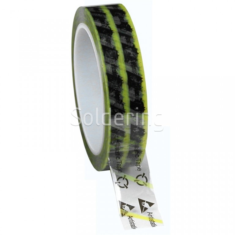 - Typ pásky: priehľadná s žltými pruhmi, s ESD symbolmi, plastové jadro.