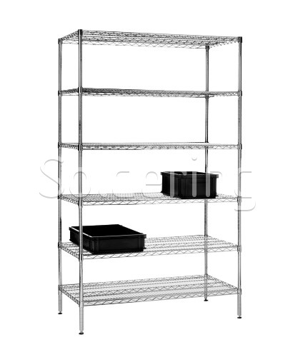 - ESD oceľový drôtený policový regál so 6 plochými drôtenými policami.