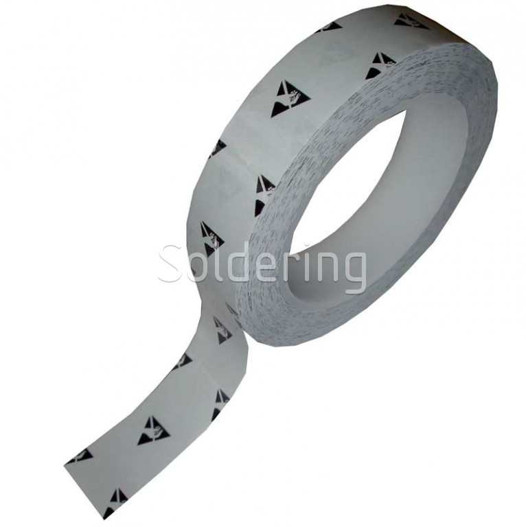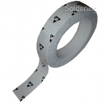 PVC samolepiaca páska s akrylátovým lepidlom, po oboch stranách antistatická. Jednoduchá manipulácia pri lepení a odstraňovaní pásky. Páska obsahuje veľmi viditeľná ESD loga. Slúži keznačení na podlahu, lepenie v EPA priestore, upozorňuje na ESD obsah v balení (iba symbolom).