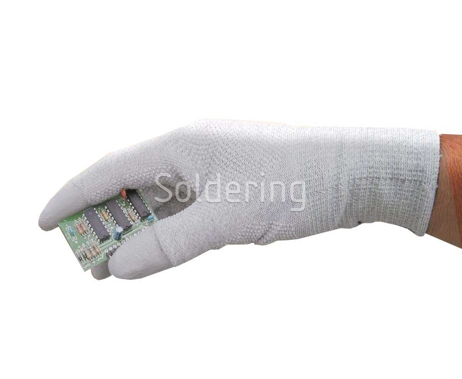 - Disipatívne pracovné rukavice vyrobené z bezšvového tkaného nylonu.