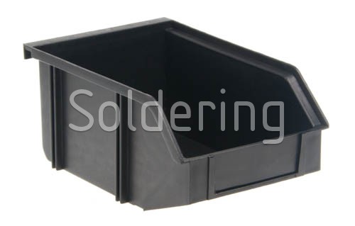 Antistatická stohovacie priehradka na komponenty a malé súčiastky, vyrobená z vodivého plastu. Vonkajšie rozmery 197 x 130 x 89 mm, čierna farba.