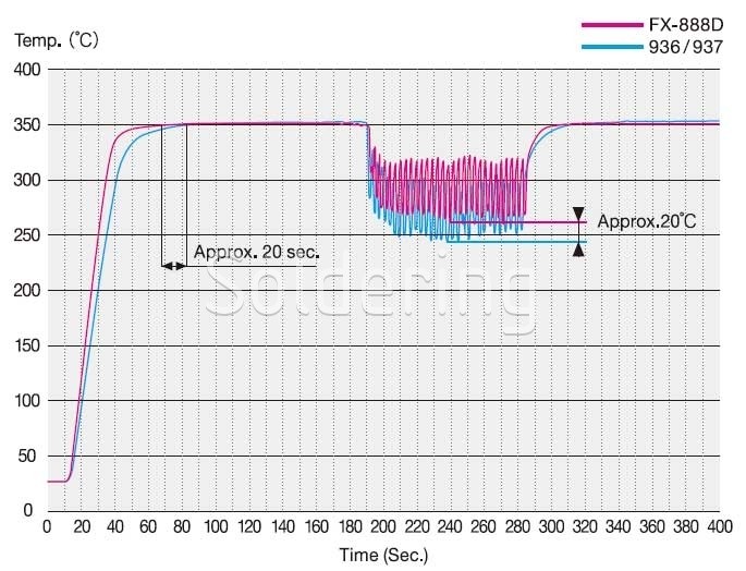 Doba nábehu na 350 ° C je o 20 sekúnd rýchlejšia a pokles teploty hrotu sa počas nepretržitej práce znižuje.
