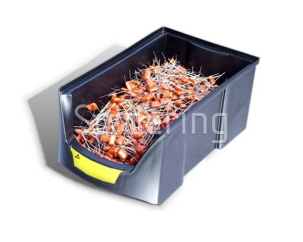 - Antistatický stohovací zásobník vhodný na skladovanie komponentov citlivých na elektrostatický výboj.