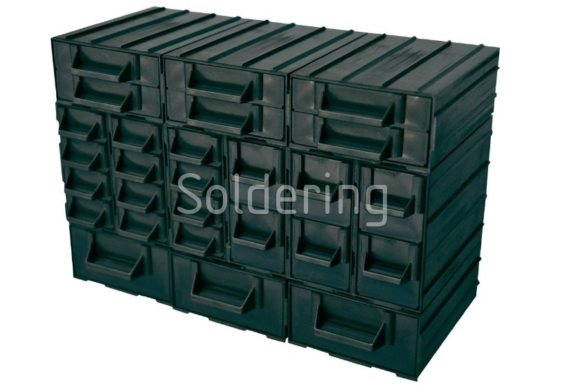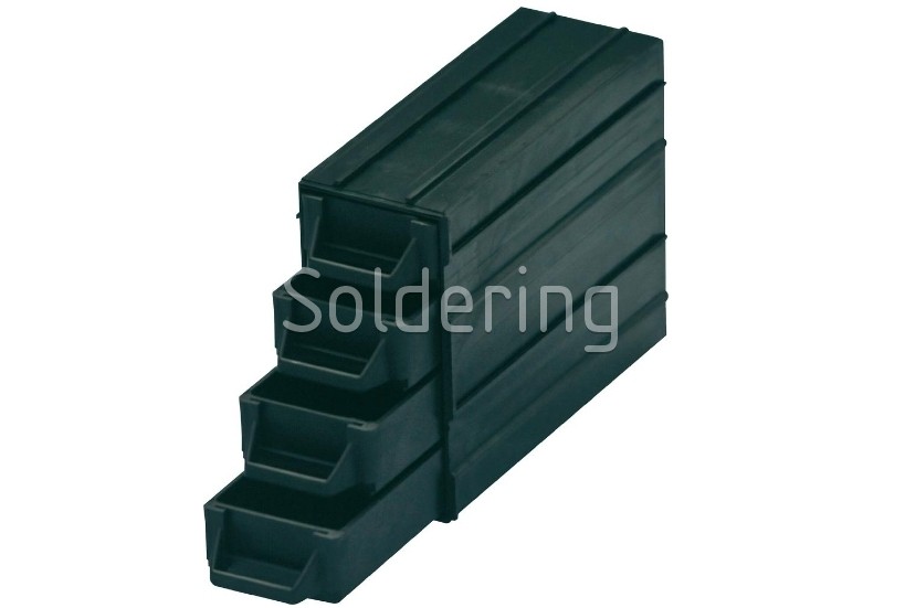 Modulové prevedenie. 4 rôzne prvky môžu byť spojené v ľubovoľnej kombinácii bez použitia náradia. Všetky zásobníky zle vzájomne ľubovoľne kombinovať. Zásuvky s miestom pre upevnenie štítkov.