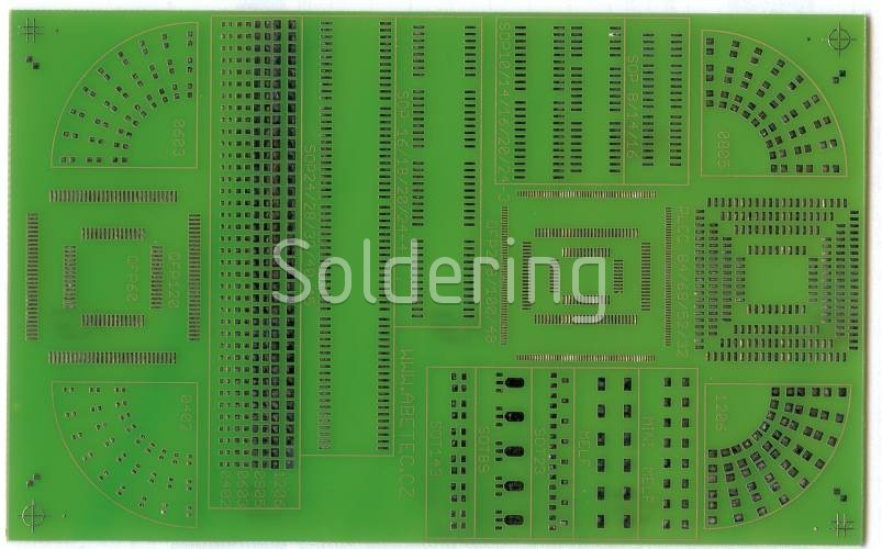- Doska obsahuje motívy SMD chip, Melfi, PLCC, QFP, SOI, ai
