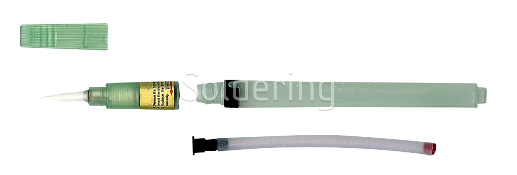 Štandardné doplňovacie pero s tavivom, obsahujúci nylonovú kefovú špičku. Vhodné na nanášanie taviva pred spájkovaním, pre odstránenie oxidačné fólie, pre zlepšenie pájitelnosti pri opravách alebo pre čistenie DPS rozpúšťadlom, napr. alkoholom.