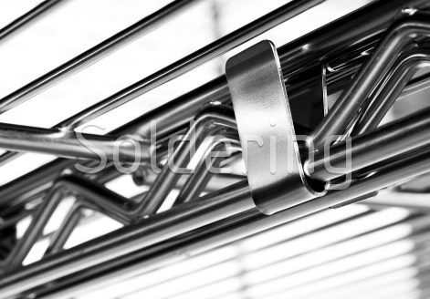 Háčik v tvare N pre spojenie 2 policových regálov bez použitia stĺpikov.