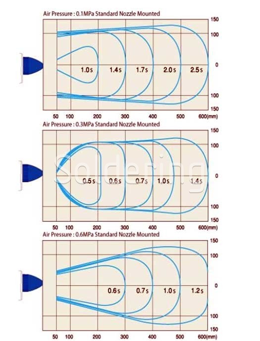 - Operačná vzdialenosť 50 mm, tlak vzduchu 0,1 – 0,6 MPa.