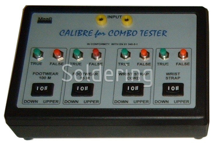 Kaliber Combo testera je prístroj určený na kalibráciu testerov ochranných přizemňovacích náramkov, ich prívodov a obuvi, ktoré sú používané na antistatických pracoviskách vo vyhradenom priestore podľa EN 61 340-5-1. Uvedená norma predpisuje dennú kontrolu spôsobilosti týchto náramkov a obuvi testerom, ktorý je potrebné minimálne jedenkrát ročne skalibrovať.