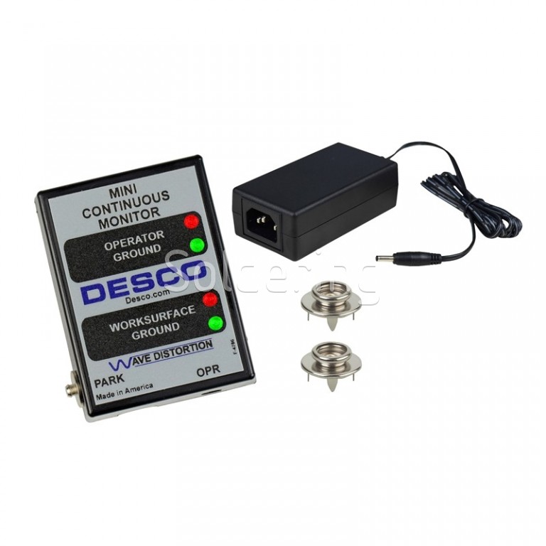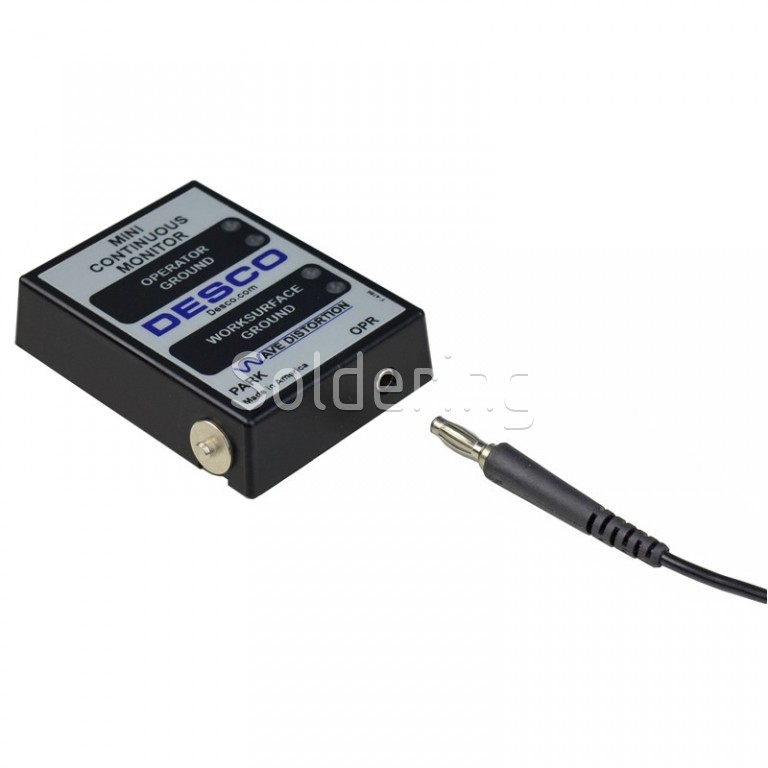 Kontinuálny monitor pre jednu pracovnú stanicu, ktorý priebežne kontroluje integritu uzemnenie jedného operátora a jedného ESD pracovného povrchu.