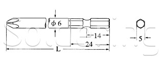 Krížový bit V-14, dia 6mm, dĺžka 100 mm