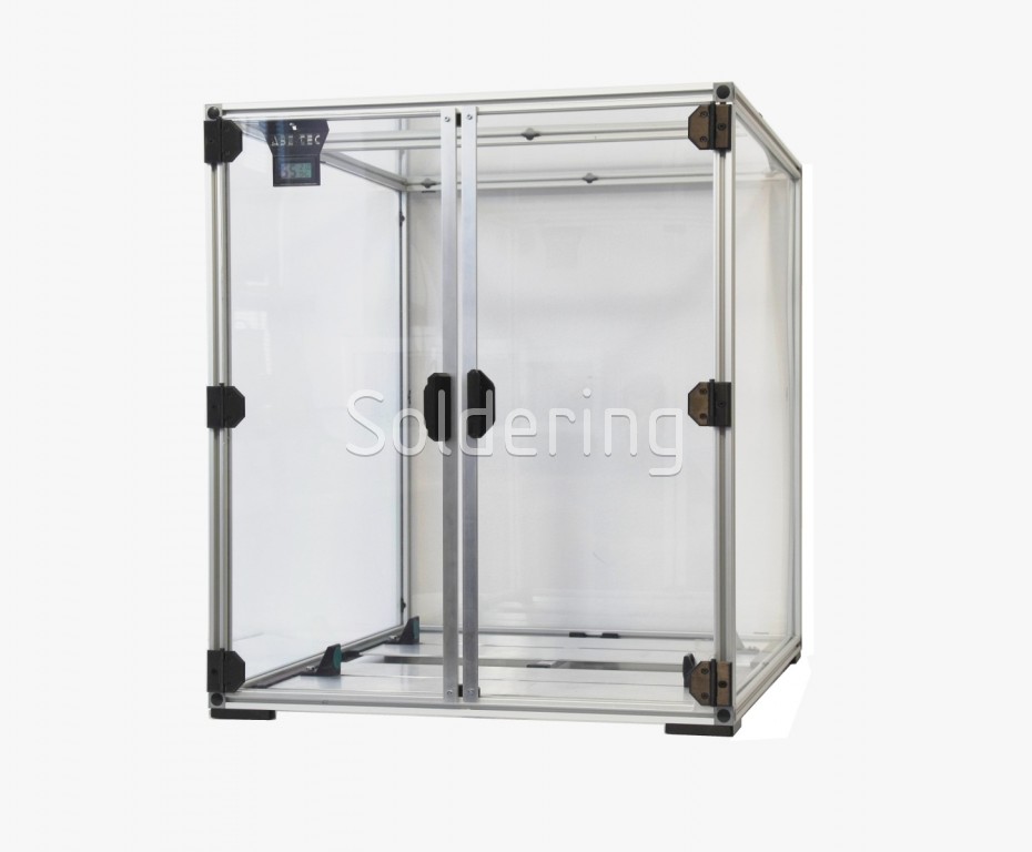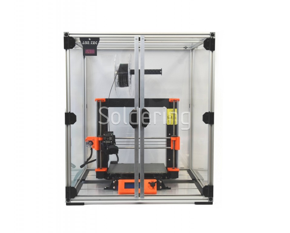 Priemyselný kryt na 3D tlačiarne. Kryt je vyrobený z hliníkových profilov. Výplne sú z akrylátového skla (polymetylmetakrylát – PMMA). Predné dvierka sú zavesené na plastových pántoch a zaistené magnetmi. Dno obsahuje pohyblivé univerzálne úchyty pre bezpečné zaistenie 3D tlačiarne. Kryt je navrhnutý ako univerzálny a nie je nutné tlačiareň demontovať. Ovládací panel je stále súčasťou tlačiarne.