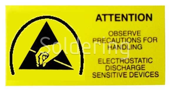 Lepiaca štítok s nápisom "ATTENTION" v anglickom jazyku určený do vyhradených priestorov EPA. Rozmery 50 x 25 mm. Identifikuje elektrostaticky citlivé súčiastky, zostavy.