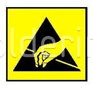 Lepiaca štítok so základným symbolom ESD určený do vyhradených priestorov EPA. Rozmery 12,5 x 12,5 mm. Identifikuje elektrostaticky citlivé súčiastky, zostavy.