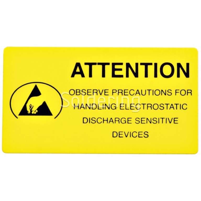 - ESD / antistatický lepiaci štítok určený na značenie ESD predmetov, sáčkov, EPA priestor.