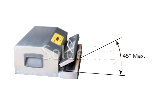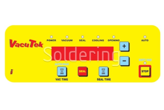 Model VACUTEK zahajuje zváranie zatlačením rukoväte hornej čeľuste dole. Akonáhle cyklus začne, nie je nutné pokračovať v tlačení, sila pôsobiaca na rukoväť je približne 4 kg.