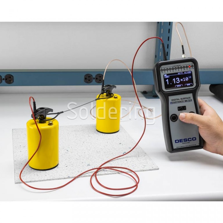 - Určuje, či je povrch disipatívny, vodivý alebo izolačné pre kontrolu ESD aplikácií v elektronickej výrobe alebo manipulačným prostredia.