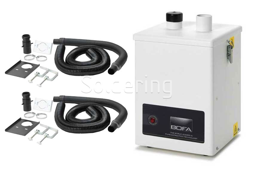 Odsávacie zariadenie BOFA sú navrhnuté pre elektronické spájkovanie, ktoré generuje dym a prach obsahujúci živičné kyseliny a plynné organické zlúčeniny. Tieto systémy sú určené pre manuálne aj automatizované procesy vrátane spájkovacej vlny, reflow, spájkovanie a aplikácie s konformný vrstvou.