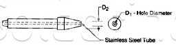 Vnútorný priemer trysky D1 0,8 mm, vonkajší priemer trysky D2 1,7 mm.