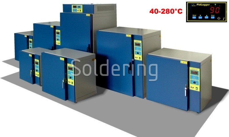 - Pečiace skriňa s nútenou ventiláciou a digitálnym nastavením teploty od 40 do 280 °C.
