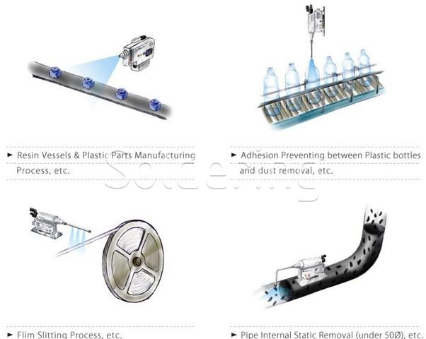 Tryska je vhodná na ionizáciu malých priestorov, avšak vďaka variabilným nástavcom je možné ionizovať vzduch vo väčšom rozsahu. Inštaluje sa väčšinou priamo na výrobnú linku, a to do ťažko prístuných miest.